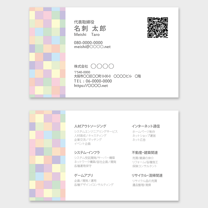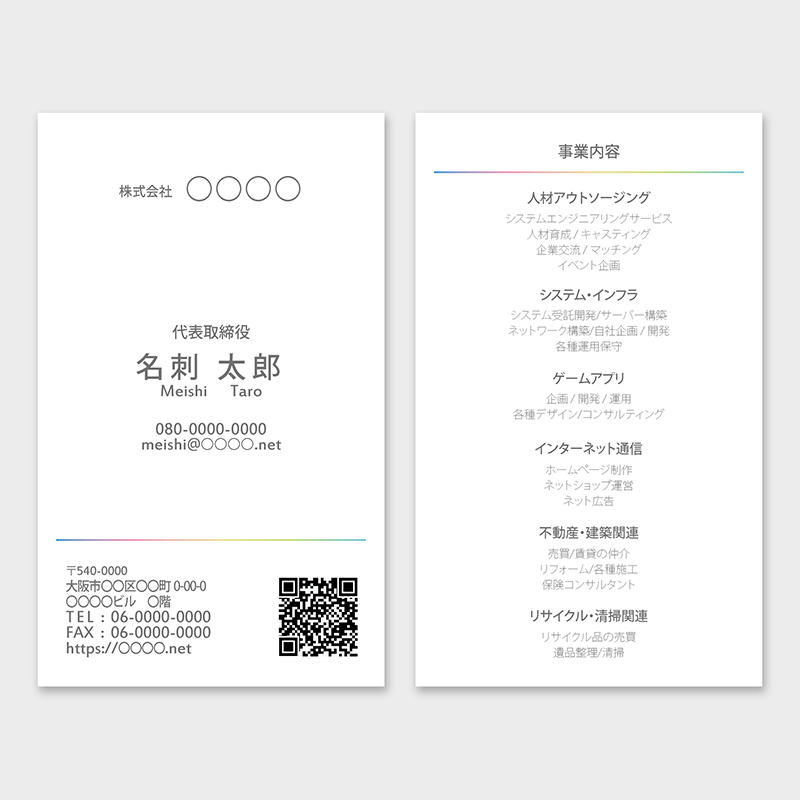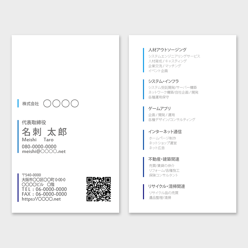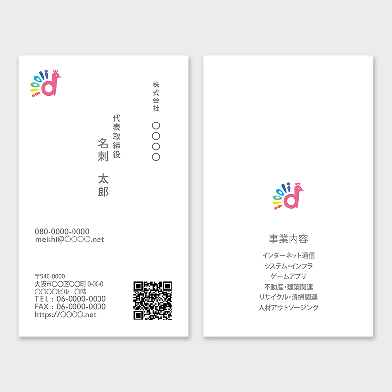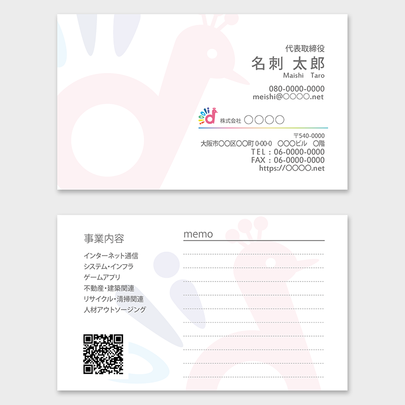 一般的な名刺デザインは勿論ですが、印象を強くするために似顔絵キャラを入れたりすることも可能です。